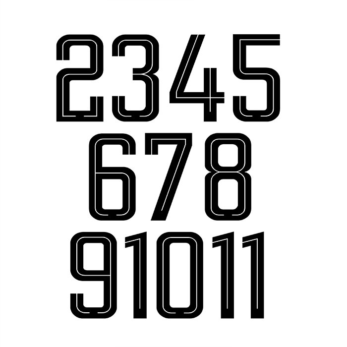 Pack de 10 pecheras deportivas infantiles numeradas del 2 al 11, con elásticos laterales. Ideales para entrenamientos y actividades deportivas.
